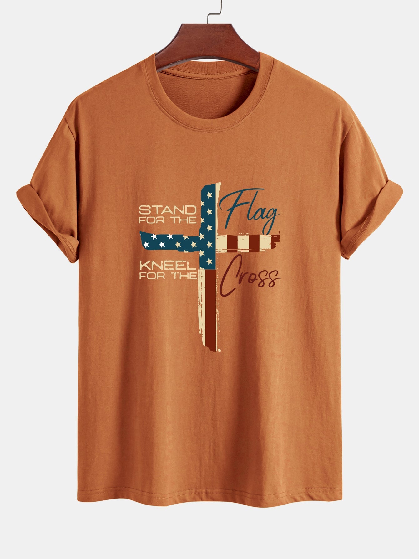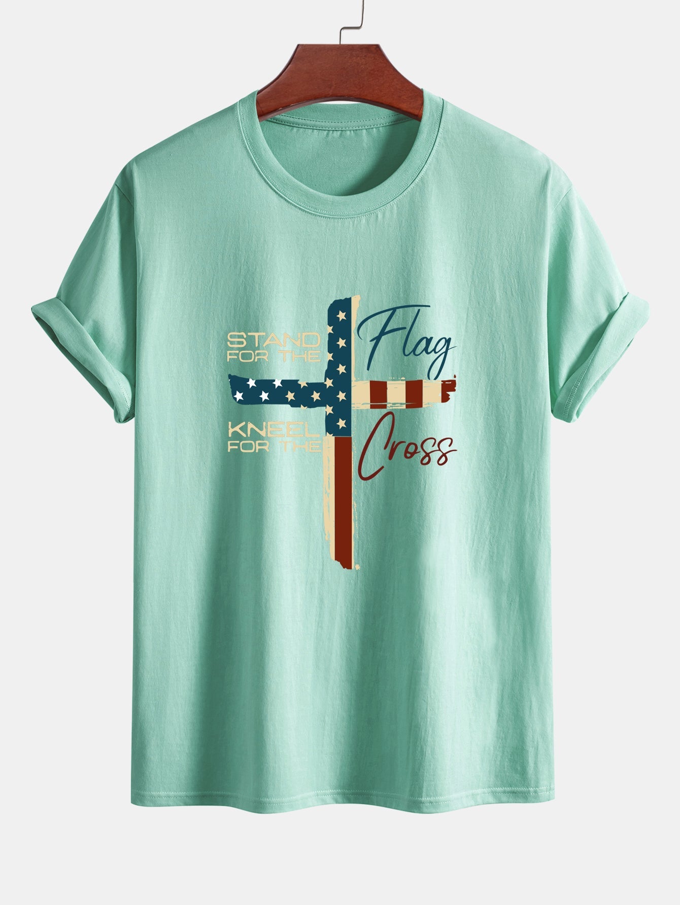 ✔️ Timeless Design: Features a bold graphic of the American flag shaped as a cross, merging style with meaning.